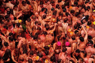La Tomatina (Spanish pronunciation: [la tomaˈtina]) is a festival that is held in the Valencian town of Buñol, a town located 30 km from the Mediterranean, in which participants throw tomatoes and get involved in this tomato fight purely for fun. It is held on the last Wednesday of August, during the week of festivities of Buñol...