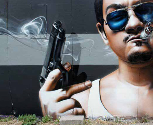 Well for the first couple of years it was just bombing – no dubs or throw ups or anything like that – just dedicated tagging without even having picked up a spray can. But as soon as I got the can in my hand, I started to really become part of the local scene and my development started to accelerate as I began doing my letters almost straight away. It was a natural progression from tags into throw ups and on into Wild Style pieces, but I’d always had this feeling for characters. Even as a kid back in school, I’d be the one spending 3 days drawing up the title page for a my history book or something and so while I won’t say it came naturally to me years later – it was always there on some level. I was doing all the usual B Boy stuff and a lot of Manga when I first started out, but as I got better with my use of the can and continued evolving past that cartoony feel, it just took on its own momentum. At first it was just flat colour with a bold outline, and then I’d start cutting back that outline and making it perfect - then blending my colours and moving up and up and up, continually challenging myself. Even to this day, I think that photo realism is the hardest thing for me technically – letters are tough too because I’m never completely happy with the outlines, but every single time I do photo realism, it’s seriously challenging but then, I do love that drive to keep pushing myself.