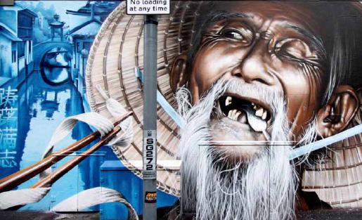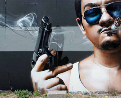 Tearing a finer shade of gobsmacking into some seriously stunning walls, Australian born, Glasgow based artist Smug is a man on absolute fire. Harnessing phenomenal can control into outrageously well defined characters bursting with life, love, laughter, rippling pathos and an electro magnetic radiance, his jaw dropping photo realism has hit a new gear of total awesomeness. Real rockets through hints of surreal, rips up some bad boy biznizz on the fly, ram raids science fiction into a concrete star system, skids into a grinning wink and lovingly slides down liquid sensuality on the shadowy curve back into the human form. From the richly animated to the nano weighted his precision characters and devilishly honed visual spaces take on a gloriously unpredictable whirl of subjects, all impeccably finished to hypnotic standards of funky excellence...